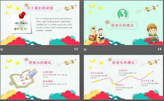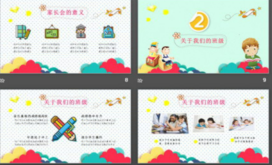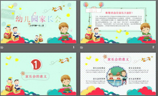 色彩丰富,颜色浅淡,整体看上去更舒服,看着也非常得体,呈现出更惊艳的视觉效果,让人眼前一亮,整体给人的印象更好。可爱卡通风格的幼儿园家长会PPT模板界面灵动,整体看上去更活泼,看着也非常精神,整体看上去更有活力。