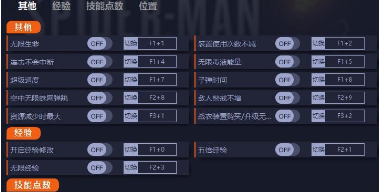 蜘蛛侠迈尔斯莫拉莱斯二十八项修改器轻松修改相关游戏的全部内容,玩家遇到打不过的对手可以直接修改数值和属性,轻松让你闯过游戏的每一关,软件里面有所有的修改项目信息,玩家可以去查看并且修改,热键修改很方便,让你的游戏体验得到最佳的感受。