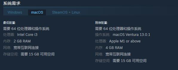 存储空间:需要 15 GB 可用空间