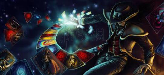选牌(主动技能):崔斯特扔出一张卡牌对目标造成眩晕、范围伤害或回复友方法力值。