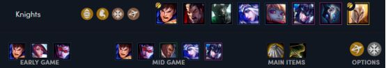 暗影骑士的阵容在现在的版本中涉猎的玩家也并不是很多,但是这套阵容成型快、转型也快,一旦成型了以后就是完整的一套前排阵容,针对一些突进、龙法这样的高输出的阵容还是值得一战的,尤其是在后期以叠加天使为主能够更好的为团队争取到护盾的保底效果。