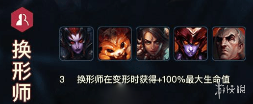 换形师包括豹女,蜘蛛,龙女,纳尔,乌鸦,3换形可以使他们在变形时获得额外100%的最大生命值。换形师推荐豹女 ,龙女,纳尔,乌鸦四选三,蜘蛛只有在恶魔阵容中才可以发挥作用,并不推荐。