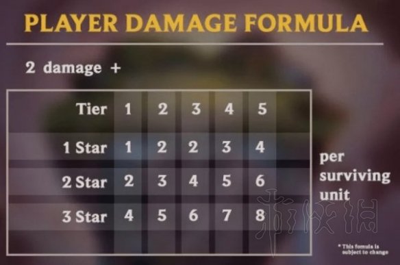 首先每回合,输家都会有2点基础伤害。(每失败回合结束后也就是对方攻击你的最后一下)回合结束的时候,场上留下的每一个1/2/3/4/5费怪在1/2/3星造成的伤害如表所示。一旦后期打输了,对面场上留下多个2/3星高费怪,被入20+血就太正常了。