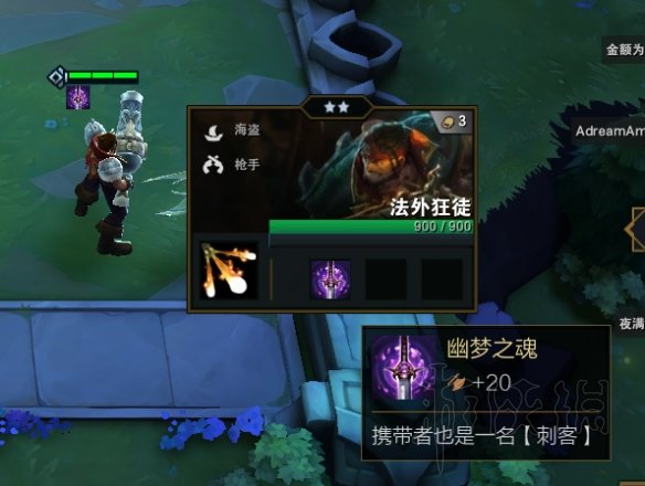 嘿嘿,别担心,这时候就是这个游戏最厉害的装备没有之一金勺子上场的时候了 金勺子+暴风大剑是可以合成幽梦之魂,而幽梦之魂的效果就是把携带者变成一名刺客。