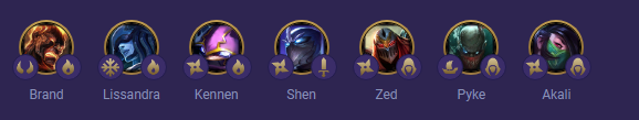 元素刺七人口成型,分别是二费的劫、丽桑卓、派克、慎,三费的凯南,四费的火男,阿卡丽。阵容成型后达成的羁绊有三刺客三元素四忍者。