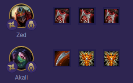 劫拿物理输出装,例如无尽,基克的先驱,神圣之剑等。阿卡丽拿肉装,例如鸟盾,灵风等装备。火男拿法系装,例如帽子,鬼书,卢登等装备。