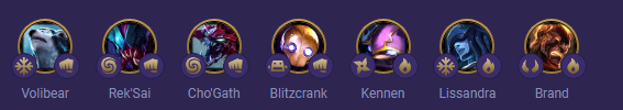 拉面熊是七人口成型阵容,分别是二费的冰霜女巫、虚空遁地兽、机器人,三费的雷霆咆哮、狂暴之心,四费的虚空恐惧、复仇焰魂。阵容成型后达成双极地三元素四斗士。