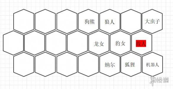 7人口:机器人(斗士)、豹女(狂野)、狼人(斗士狂野)、狐狸(狂野)、狗熊(斗士)、大虫子(斗士)、纳尔(狂野),前期纳尔可用狮子狗(狂野)代替。