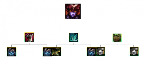 龙女推荐出装如下图:反甲可以反弹真实伤害,绿叉能使自己免疫暴击,狂徒可以提供百分比回血,龙女变形后伤害极高,因此我们需要出肉装使自己能站住场面,有生存才有输出。