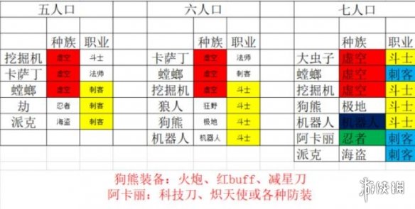 刺客羁绊会增加刺客棋子的暴击率,虚空羁绊让虚空英雄拥有真实伤害,斗士增加斗士英雄的血量,刺客提升攻击力,机器人开局钩,而刺客英雄中拥有虚空羁绊的是螳螂,虚空中拥有斗士属性的是大虫子,机器人又是斗士,忍者又是刺客,所以这个阵容是有肉有团控,还有高爆发输出。