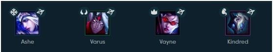 游侠艾希/维鲁斯/薇恩/千珏(艾希/维鲁斯必备,千珏和薇恩替补)