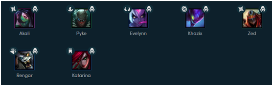 刺客对缺乏保护的后排威胁很大,然而现在剑魔/莫甘娜/凯南极为热门,刺客很容易死于不明AOE。