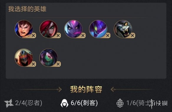 打造一个刺客盖伦的阵容也很简单,主输出当然是盖伦,另一个大哥可以让阿卡丽当,组成:6刺阵容!