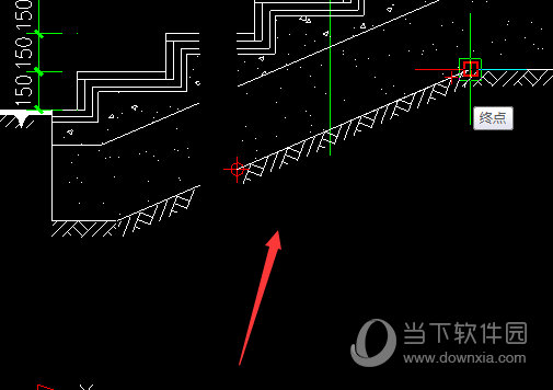 2、然后在CAD图中,先选择需要标注斜线的一个端点,然后像拉直线一样,。