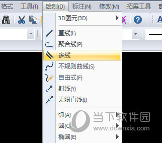 1、在软件顶部菜单栏点击【绘制】–【】,或是在命令行输入【MLINE】命令调用命令。