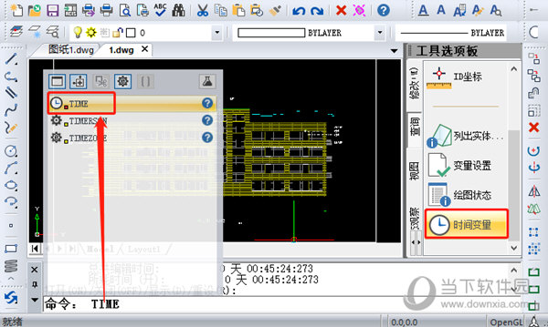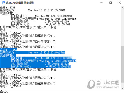3、亦或是在命令框里输入“time”命令字符,这时候查询CAD素材图纸的创建时间和更新时间亦会显示。