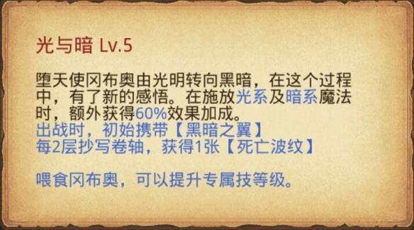 堕天使提供大量死波卷轴,另外提高光暗魔法
