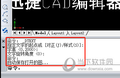 2.或是直接在命令框里输入“”命令字符,然后根据命令“请选择要编辑的文字:”指示、“指定端点或[起点(S)]:”指示操作,选中绘图框中的单行文字,根据新的起点和终点扩展或压缩文本对象的宽度。