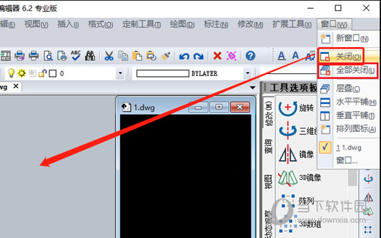 3.若是我们直接选择点击全部关闭(L);按键选项,则会直接关闭所有已经打开的CAD图纸。