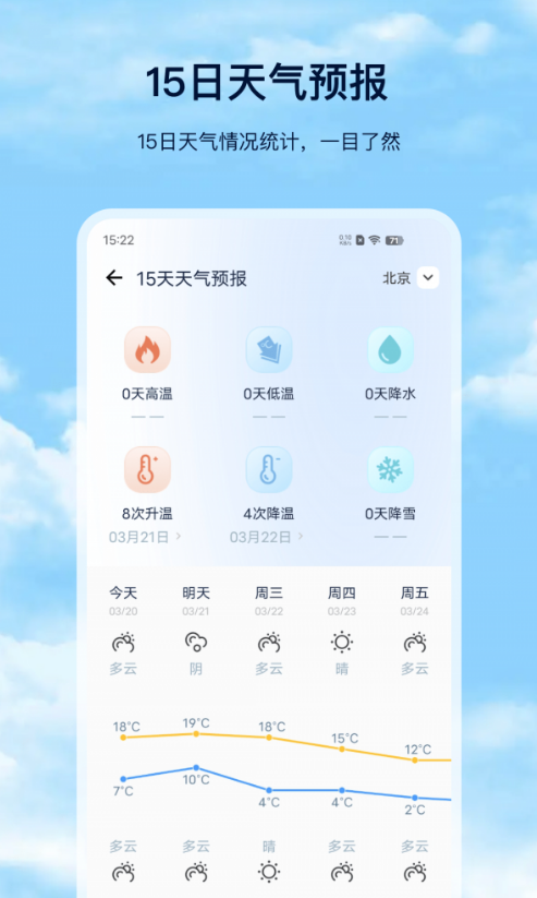 历史天气查询:用户可以查看过去一段时间内的天气情况,了解当地的气候特点和变化规律。