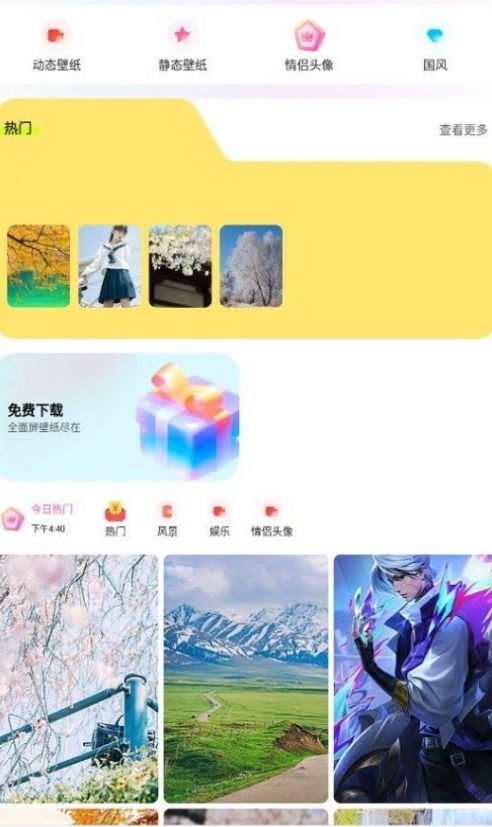 定时更换:支持定时更换壁纸功能,用户可以设置定时更换时间,让手机桌面更加生动有趣