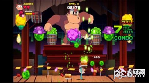 2、对战场景非常激烈,游戏玩家要控制小男孩消灭不明生物,大的不明生物在受到攻击后会分裂成小的,玩家可以收集各种道具,不同的关卡会有不同的障碍;