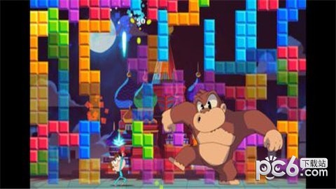 3、游戏还加入了俄罗斯方块的元素,增加游戏的难度,不要被方块砸到;