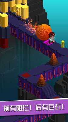 这是一款非常考验反应力和专注力的像素风逃亡类游戏。你将控制一个冒险者,在前有重重障碍拦路,后有滚滚巨石追击的危机中,逃离巨石,迈过障碍,跨过阻隔,在仅有的一条路上,夹缝中求生存,一路向前向前向前!冒险者们,绷紧你们的神经,来一场紧张刺激的大逃亡吧。