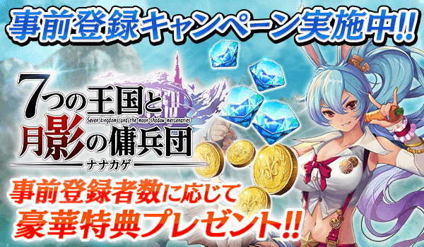 由日本 MOBCAST GAMES 与韩国 neptune 合力开发的智慧型手机游戏新作《七影~七个王国与月影佣兵团~(暂译,日文塬名:ナナカゲ~7つの王国と月影の佣兵団~)》(iOS/Android)预计于今年 5 月底推出,事前登录活动也自即日起正式展开。故事讲述受到魔王军威胁的 7 个王国和心中有着各自想法的佣兵团,为了祖国、家人的和平或是财富名声而投身战场,展开一场激烈的战斗。