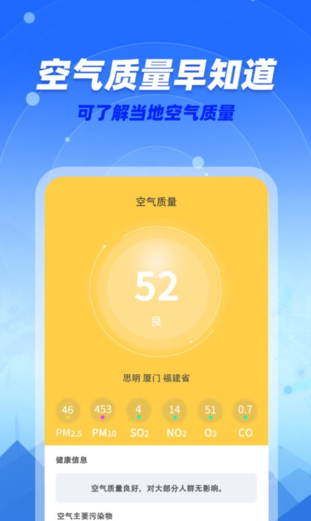 实时天气显示:提供详细的实时天气信息,包括温度、湿度、风速等,让用户随时了解当前的天气状况