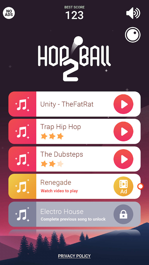 音乐弹跳球2是一款趣味好玩的休闲跳跃游戏,精简的美术画面,动感十足背景音乐和音效,在游戏中你需要找到更多的跳跃技巧才可以顺利地闯关,趣味十足的游戏玩法让你沉浸其中,也非常耐玩。快随小编探索小球跳跃的技巧,获得更高的分数吧!玩家可以选择不同的挑战难度,每一个关卡的挑战只要不断的尝试便可以获得不同的奖励。感兴趣的小伙伴快来下载吧!