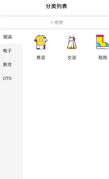 3、根据商品的类别分类到多个区域,通过搜索栏和栏目准确找到商品。