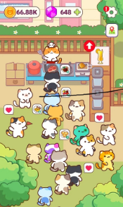 在猫咪烹饪吧游戏里面玩家需要经营好自己的餐厅,制作各种好吃的美食吸引顾客前来消费,画质是卡通类型的,食材可以自由去选择,每位顾客的需求都会不一样,要按照顾客的需求来提供美食,销售的美食越多那么获取到的收益就会越多,很有趣。