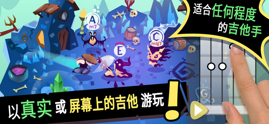 不再沉闷!有什么比在享受游戏的同时,又能够熟习和弦与磨练吉他技术更好呢?