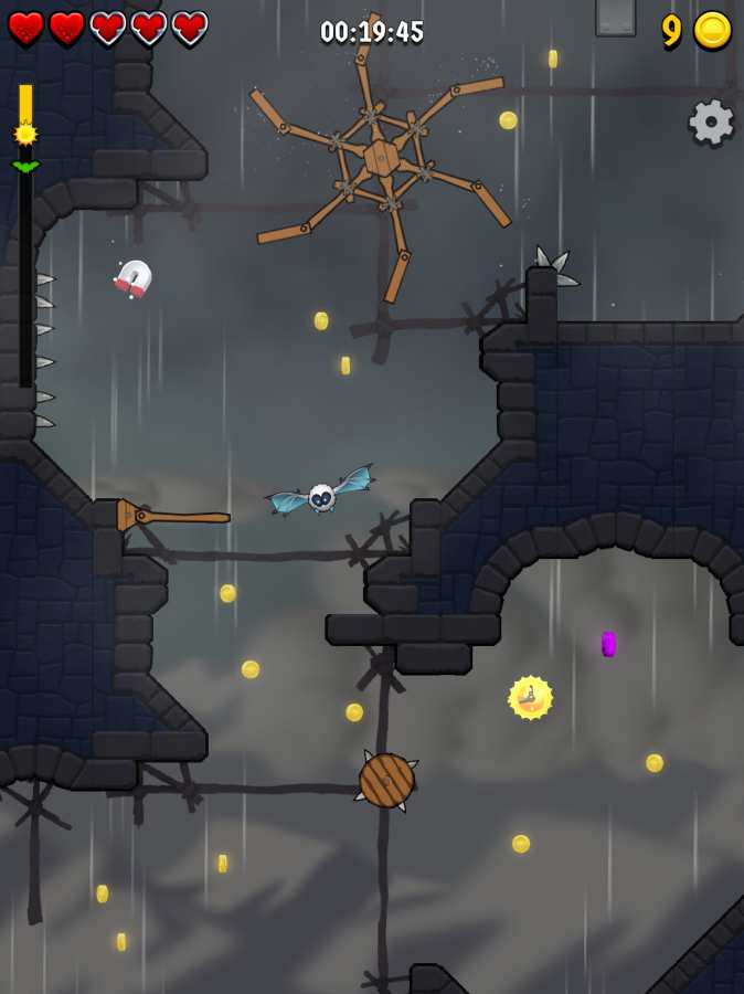 游戏拥有着超多的副本关卡等你挑战,玩家需要控制一只笨拙的蝙蝠,飞行在各种冒险关卡之中,简单易上手的操作手法,让你体验到无尽的游戏乐趣!
