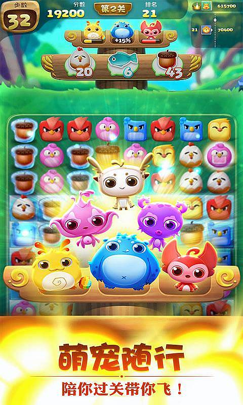 《萌鸟大爆破》是2017年创新次世代消除游戏。延续消除游戏的简单规则,易学易上手,可以轻松享受游戏乐趣!生动可爱的角色融入关卡,各式丛林角色同时上场让你耳目一新!百个精彩纷呈的原创关卡,充满挑战才会欢乐不断!加入了奇思妙想的内容创新,鸟巢、荆棘、履带等游戏元素为您带来全新游戏体验!