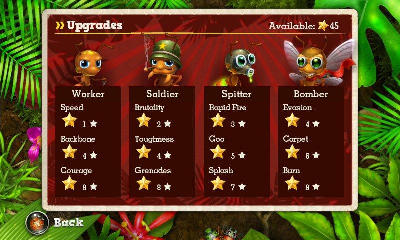 在本款塔防游戏中,您的任务是保护蚁丘,因为一波又一波的敌虫向您蜂拥扑来。杀死空袭的敌虫,部署以下四类蚂蚁来升级军队:工人、士兵、喷吐者和雄蚁。