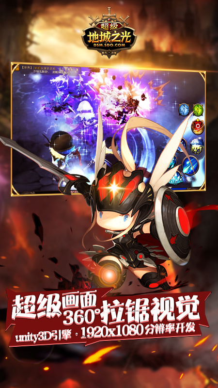 《超级地城之光》是由韩国知名游戏厂商Eyedentity Games和盛趣游戏起源工作室联合打造的一款超人气动作ARPG手游。低调华丽的暗黑画风,可爱Q萌的二头身角色人物,配上华丽技能连招操作,碰撞出超乎想象的暴力萌反差魅力!