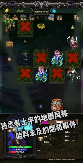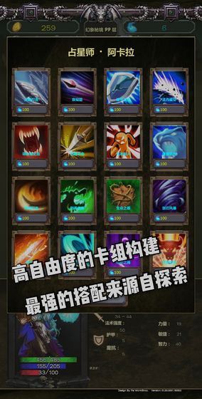 《奥秘:创世之卡》是一部偏硬核的,主体为卡牌收集战斗的清关过图游戏。不同于传统ROGUE LIKE游戏,你的一次选择错误几乎对结果不会造成太大的影响,但是多次的正确选择一定会大大提升游戏的娱乐性。目前总共用于自由搭配(不包括怪物专属,且无重复)的卡片共有200张左右,这个数目会随框架的拓展而扩大。
