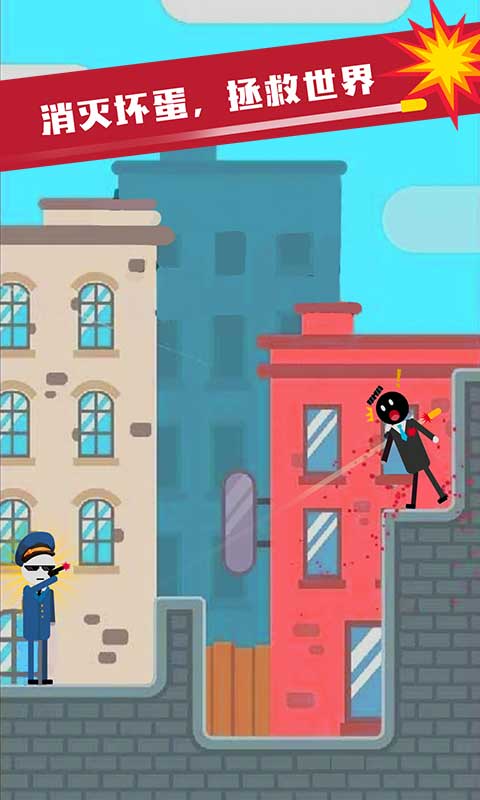 1、简约版的动作射击游戏,弱化枪战,融入物理解谜游戏,火柴人警察想要消灭坏蛋、间谍,不仅需要精准的枪技,而且必须动脑子。