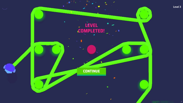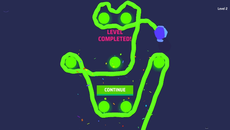 这是一款画面简约的休闲益智游戏。游戏的玩法相当简单,玩家需要做的就是利用一根绳子去将屏幕上的小球连起来。游戏的玩法虽然很简单,但是游戏的难度可是一点都不简单,首先,想要连起小球必须用颜色相同的绳子,一旦颜色不同就会导致游戏失败。其次,随着游戏的进行游戏的难度也会变得越来越高,想要通关需要玩家花费不小的力气。