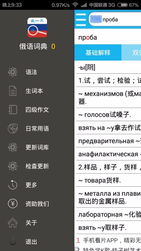 1. 在学习俄语的过程中,遇到不认识的单词,可以立即使用俄语词典进行查询。