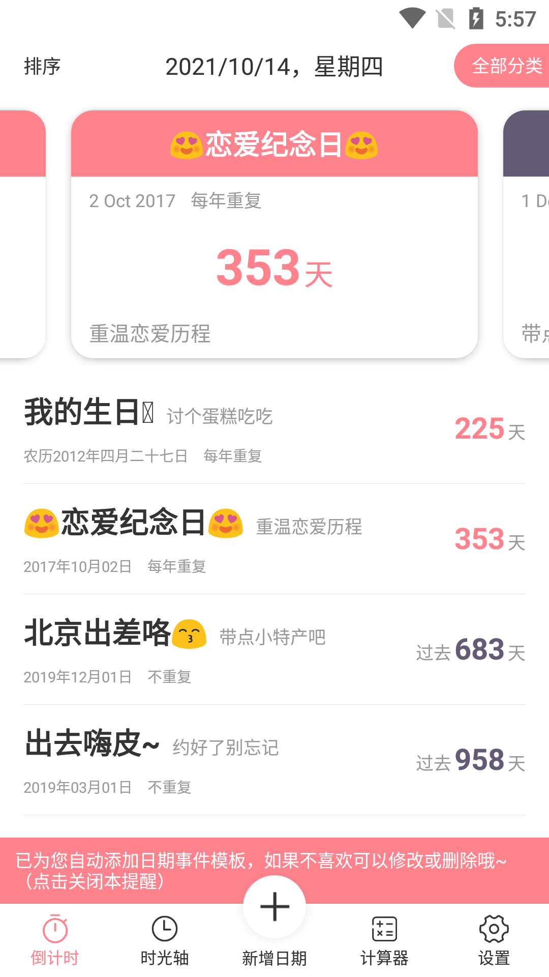 3. 提供丰富的日程模板,如喝水、生日、纪念日、锻炼等,方便用户快速创建日程。