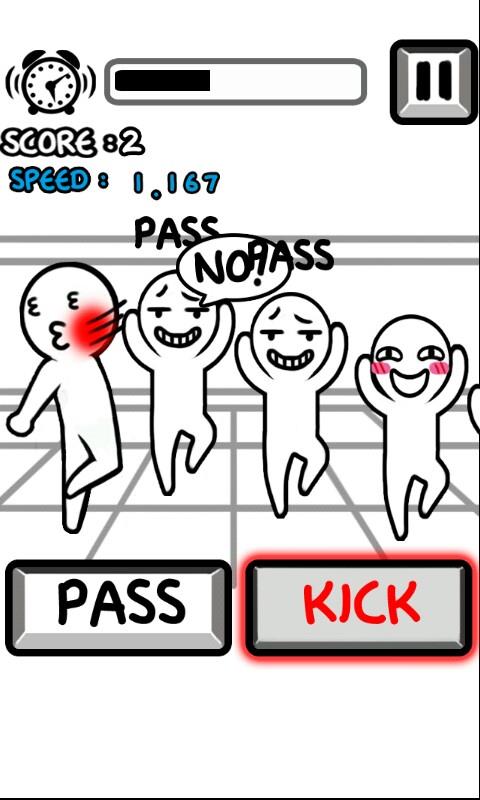 2. 操作方式:游戏操作简便,玩家只需点击屏幕即可踢飞目标角色。操作反应时间要求在0.3-1.2秒内,失误操作将导致关卡失败。