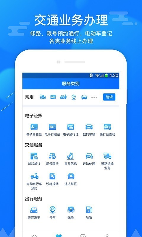 2. 功能模块:软件包含多个功能模块,如电子证件管理、交通信用查询、便民服务、违章处理等,满足用户多样化需求。