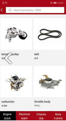 1. 主界面展示了各类汽车配件的分类,用户可根据需求快速定位。