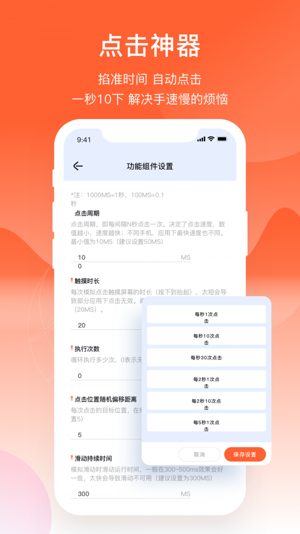 1. 自动点击:用户可根据需求设置点击频率、位置、次数等参数,实现自动化操作。