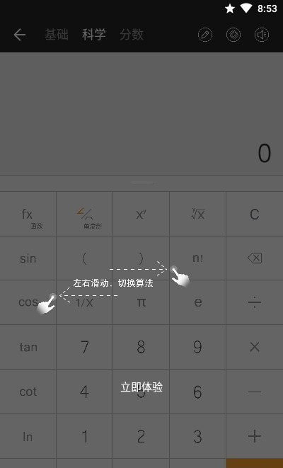 1. 支持基本加减乘除及高级运算,如乘方、根号、阶乘等。