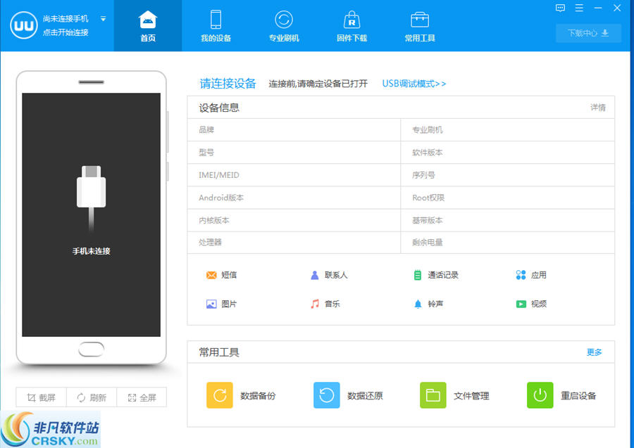 2. 连接手机:打开手机中的“usb调试”模式,将手机与优优刷机助手连接。