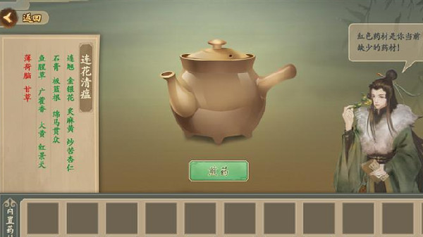 1. 煎药技巧:在煎药玩法中,玩家需要集齐药材后,根据药方中的药材名自动添加已有药材。药材不齐无法进行煎药,因此玩家需要提前准备好所需的药材。